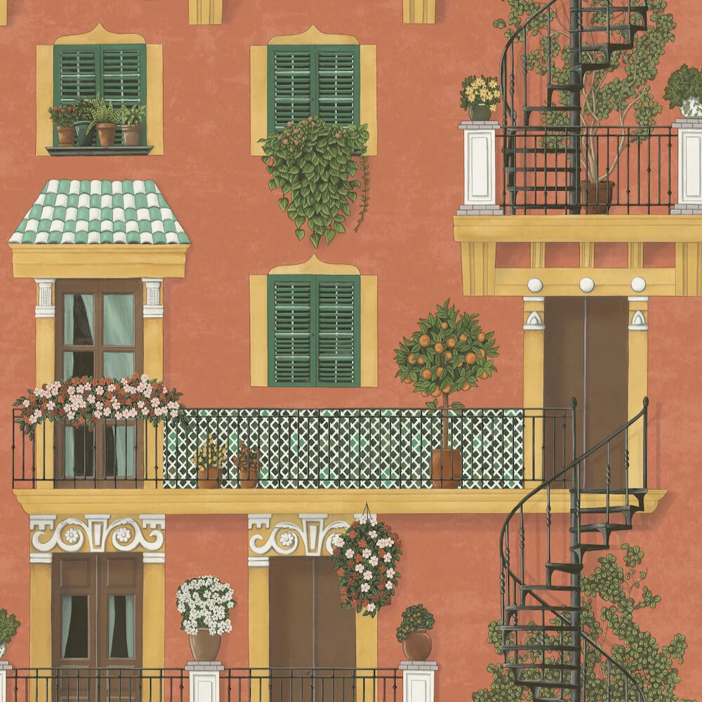 A conversational wallpaper in Ochre & Racing Car Green on Terracotta