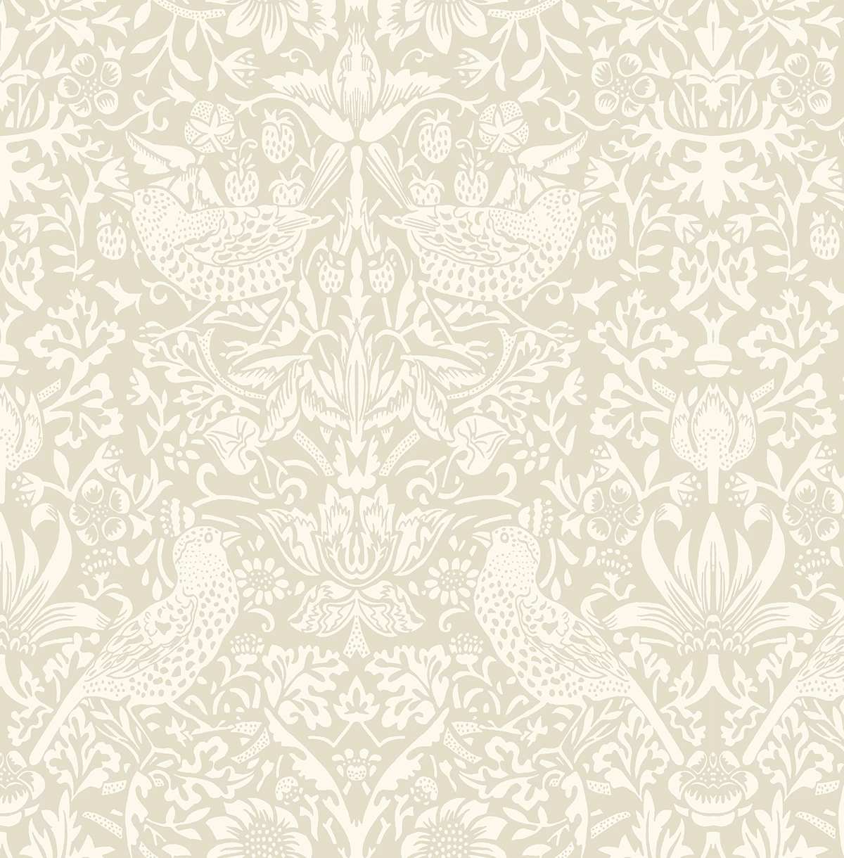 A design taken from the Arts & Crafts era. Deep muted tones throughout this colour palette. Similar to the William Morris style. Birds on a damask style pattern, Tone on tone, neutral, stone, duck egg, soft blue, green and grey. Delicate design.