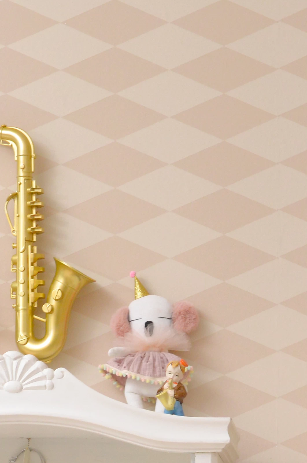 The Copenhagen design is a fun display of a diamond geometric pattern. Each diamond shape is short and elongated, giving a rounded effect to the alternating coloured shapes. The Beige Pink colourway features a diamond checker pattern in shades of soft pink and cream.