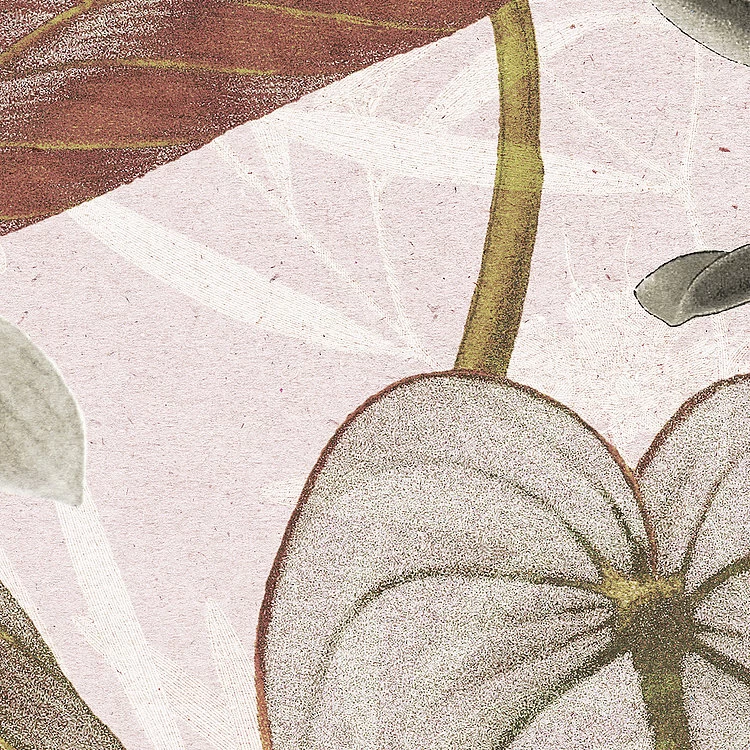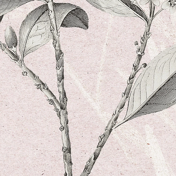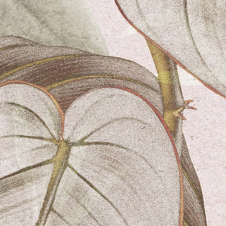 Subtle leaf optics on a delicate pink background – this collage makes not only women’s hearts beat a little faster.