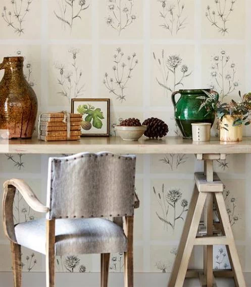 A graceful addition to the Embleton Bay Wallpaper collection line drawn botanical sketches of delicate thistles almost as if torn from the pages of a book add a touch of English elegance to your walls.