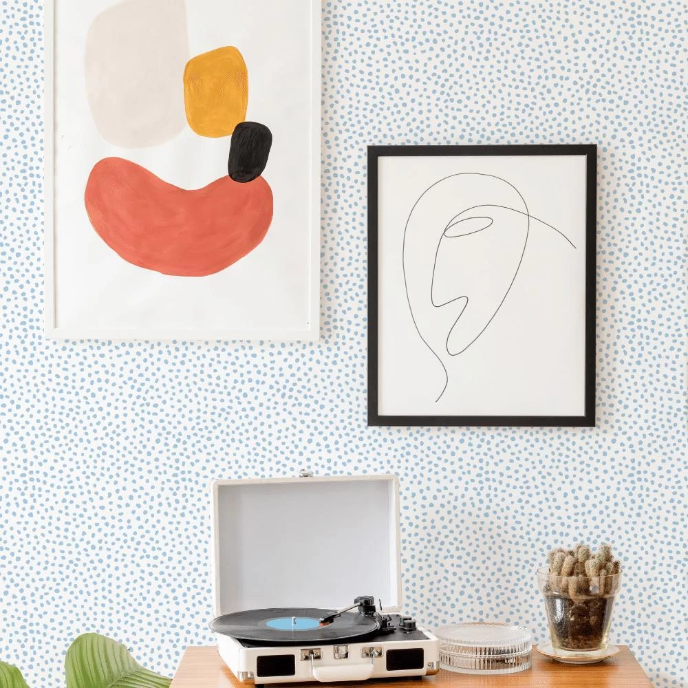 The Louis Spots design is a non-woven wallpaper featuring a classic speckled-spot pattern. This small-scale design comes in five beautiful colourways. Louis Spots in ‘Pale Blue’ features a white backdrop with soft blue spots.Â