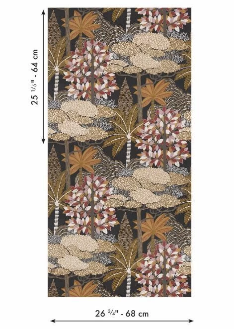 The outlines of MARAKANDA are drawn on a textured paper that recalls plants fibres. This distant, beautiful and mysterious city on the Silk Road, brings warmth and luxury to our homes. An enchanting oasis comes to life with the volume brought by the metallic and matte inks.Â