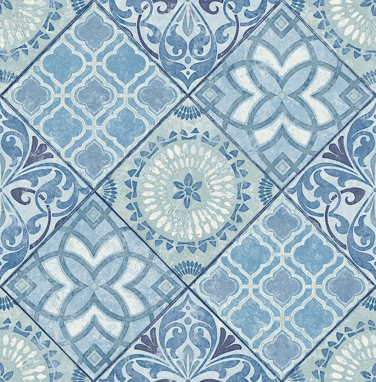 distressed federation tile look wallpaper in soft blue