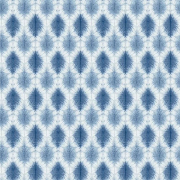 Mombi Shibori features the classic technique of Shibori dye in a classy uniform diamond pattern. The featured colours run together over a white background, creating a natural toned design. The Navy colourway features a dark blue and blue dye pattern.