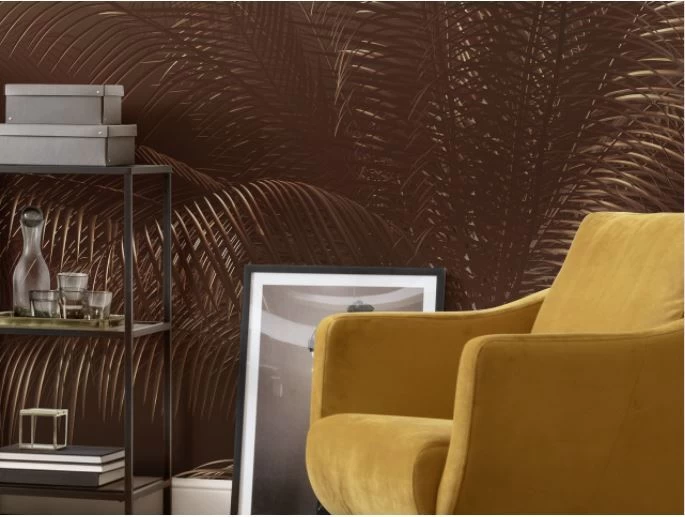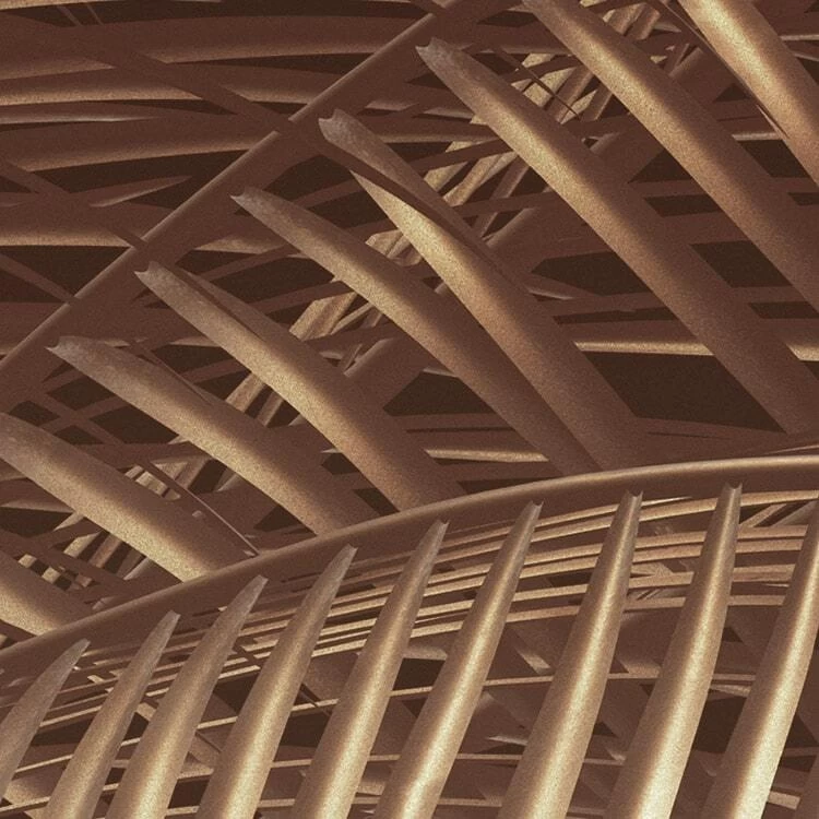 Meticulously drawn palm leaves extend upwards towards the setting sun, or perhaps it’s the rising moon? Thanks to its minimalist style, this photomural is open to interpretation.