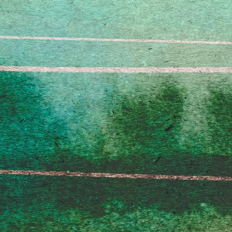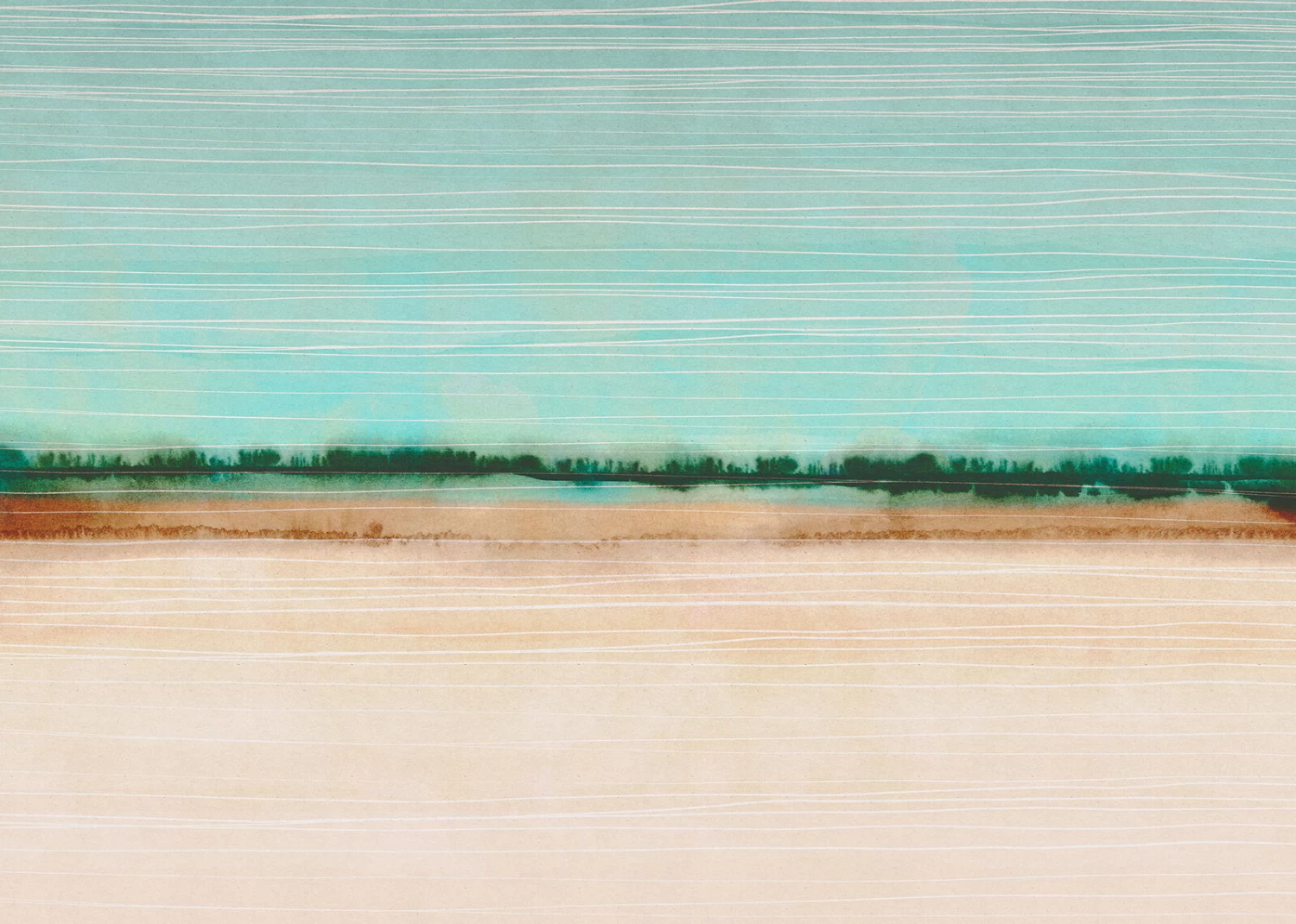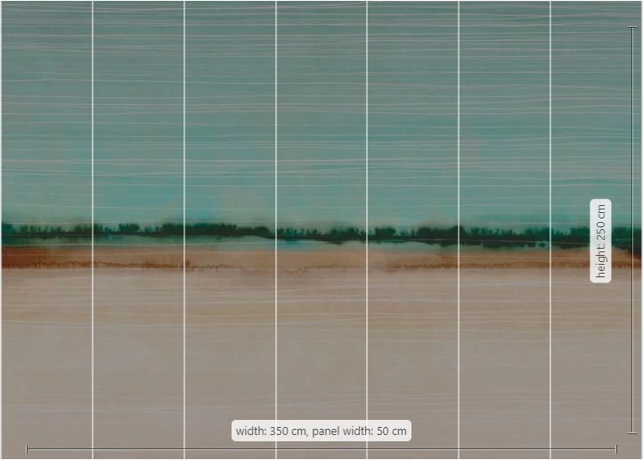Here, exotic turquoise meets light beige. These colours are separated by a darker earthy tone and some green grass. As abstract as it may seem at first glance, the motif on this photomural hints at a fine sandy beach with the sea definitely visible in the background.