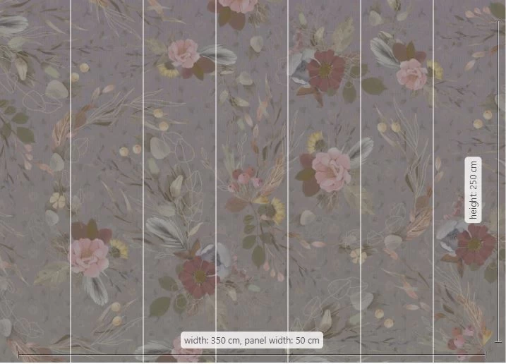 This design mural proves that dried flowers are indeed a wonderful decoration. The floral bouquets in soft earthy tones promote a creative, artistic atmosphere.
