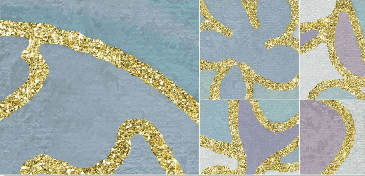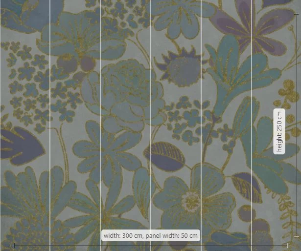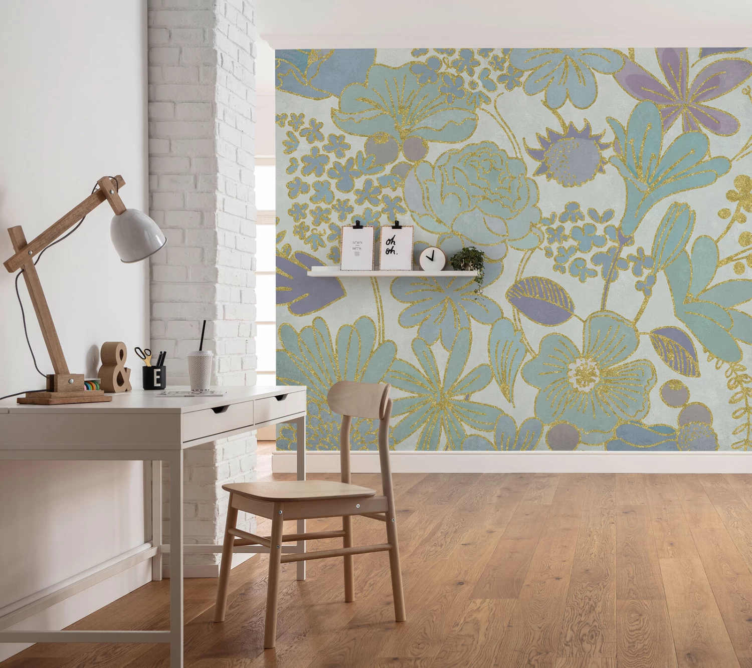 A delicate floral print that stays discreetly in the background without appearing conservative. The golden borders of the plants add a touch of glamour to this mural.