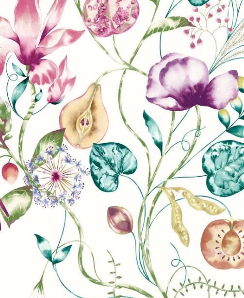 Multi coloured modern floral wallpaper mural.