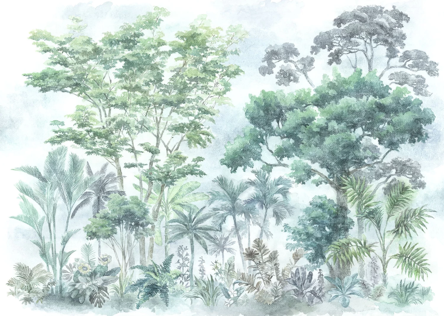 This dreamy painting awakens a desire to travel to faraway places, immediately transporting its observers into the wonderful world of pastel green.