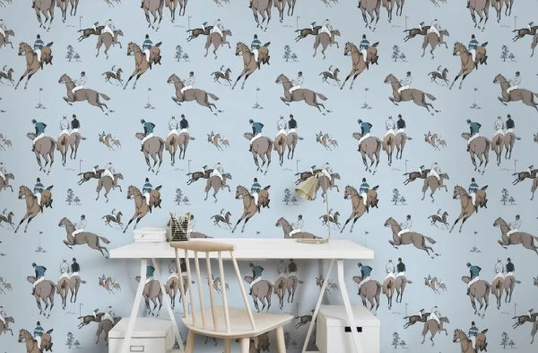 horse and jockey wallpaper, available in 4Â colour options.