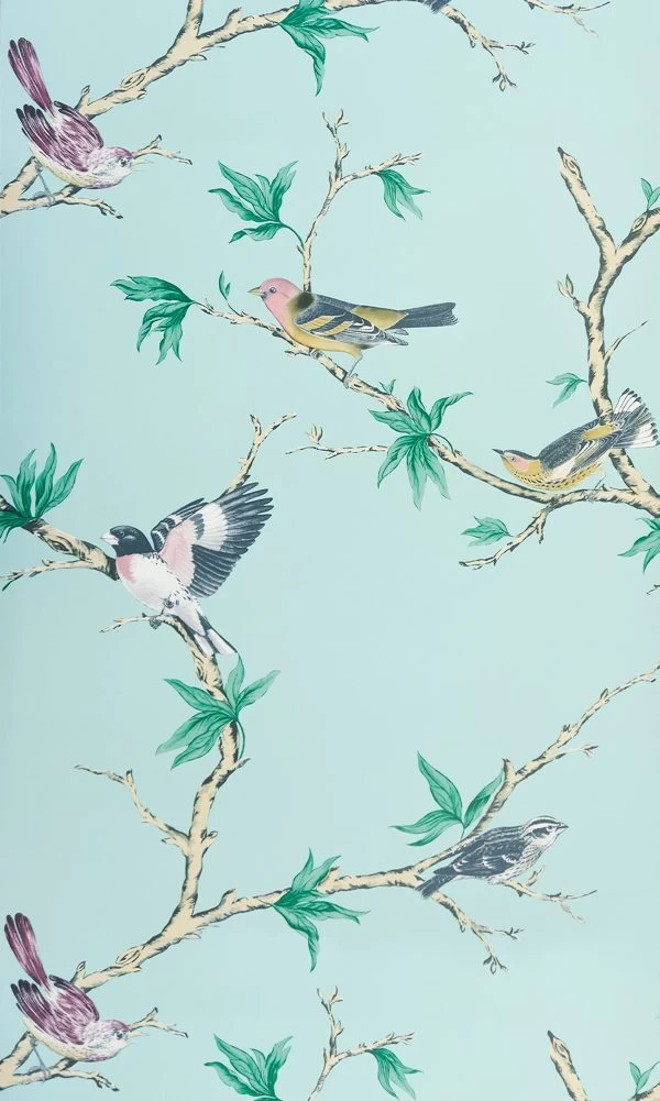 sparse bird on a branch design wallpaper, available in 5 colour options.