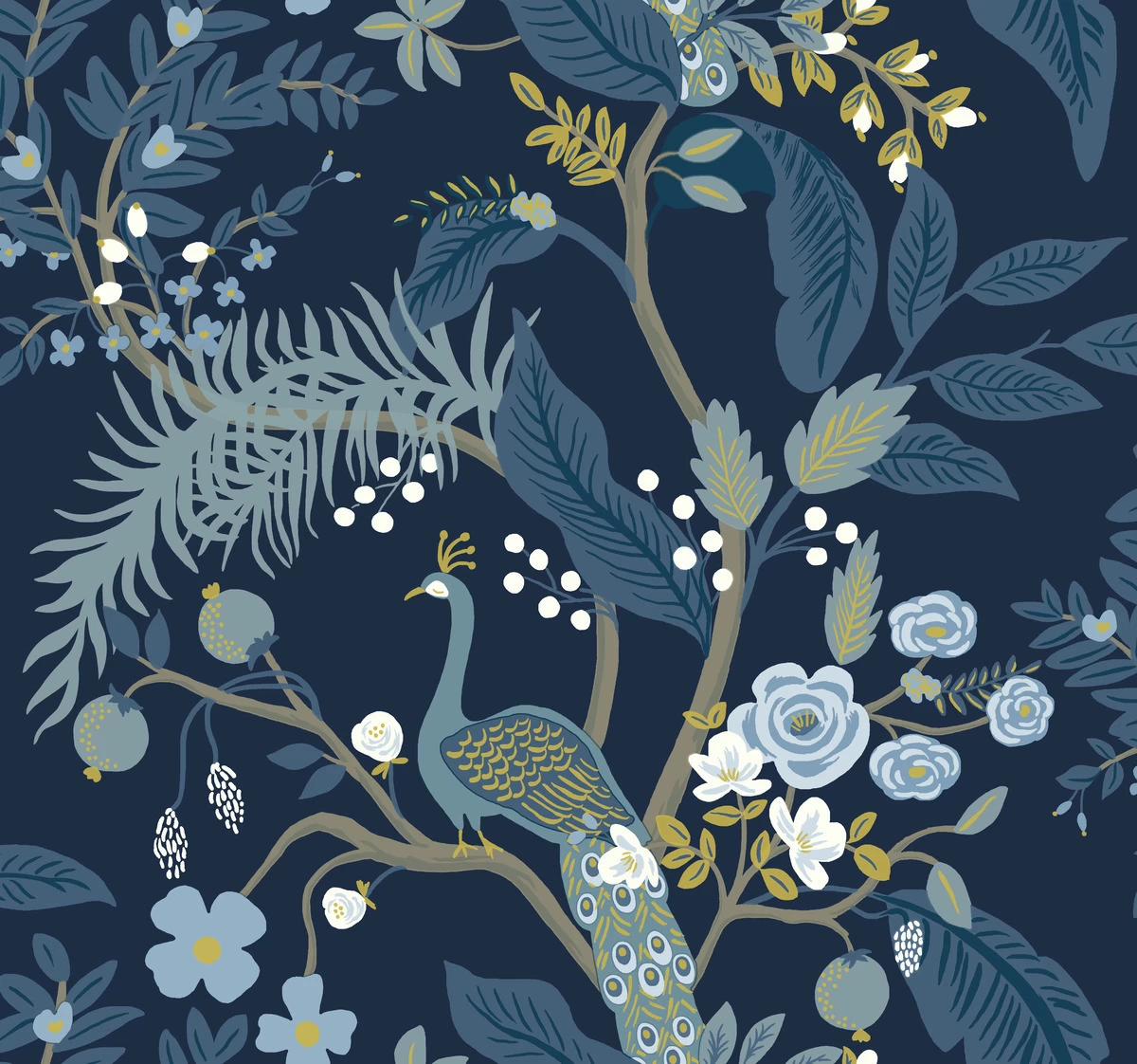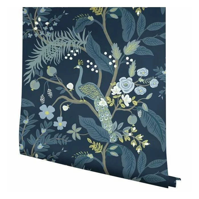 Beautiful peacock and tropical blossom design to make a bold feature an any room. Available in 5 colours including Emerald Green, light blue, linen, blush, periwinkle and black.