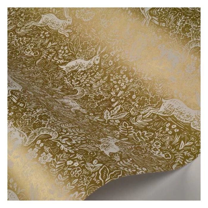 Hares and squirrels play amongst the flower meadow. Available in 5 colours including Mineral, Emerald, Linen, Gold & Black and White